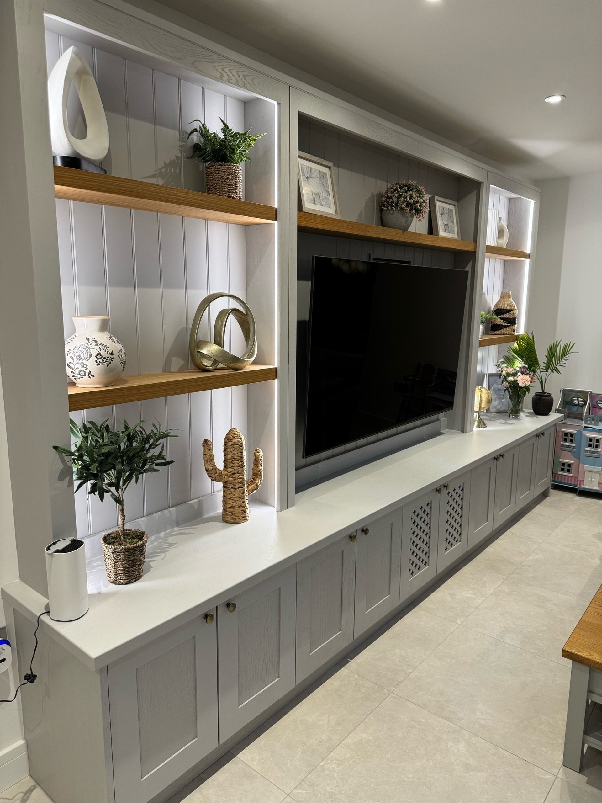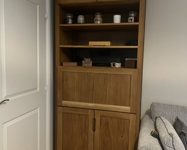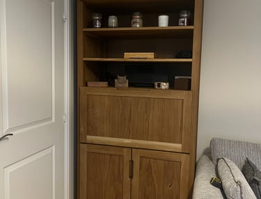 Very nice cupboard/bookshelf unit to fit under an unused breakfast bar which made the room more stylish and gave us useful space for storage. Made to measure in gently coloured pine, and fitting perfectly as though built-in, though in fact free standing. Complete satisfaction!