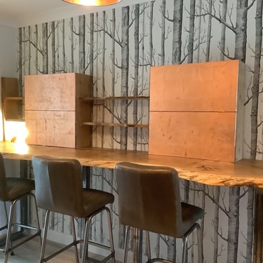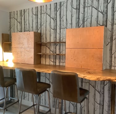 Thanks to Steve for crafting our unique live-edge bar/work desk, cabinets and shelves. Made from a handpicked oak slab. Steve was with us along every part of the journey as the design and work evolved. We also appreciated your great sense of humour and laughs along the way.